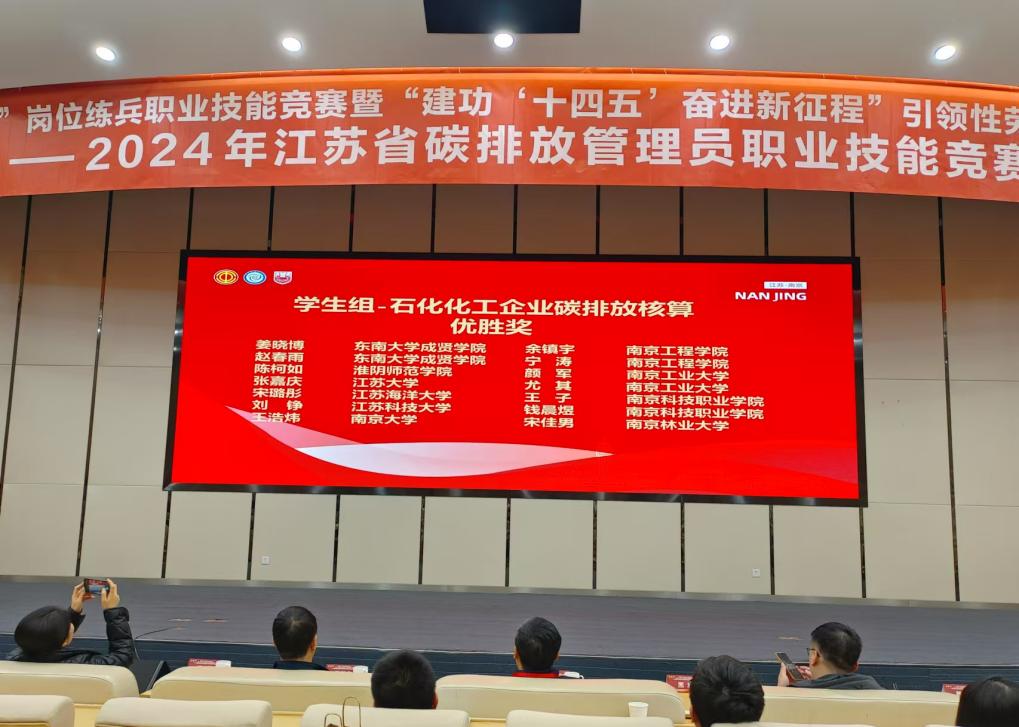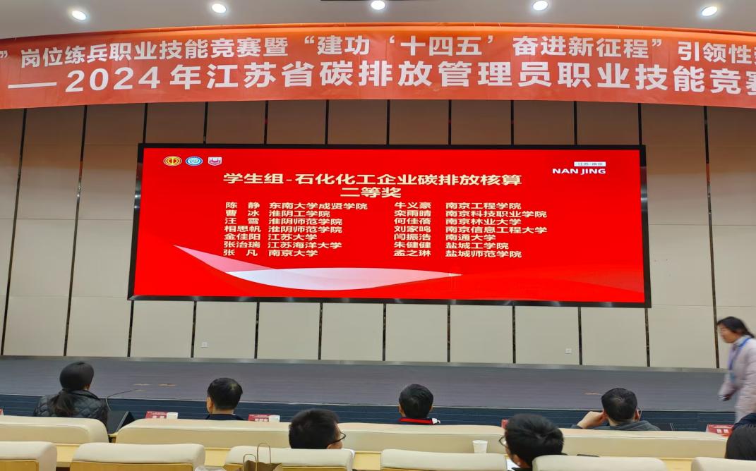11月29日至30日,由江苏省机冶石化工会、江苏省能源行业协会主办的首届江苏省碳排放管理员职业技能竞赛在南京工业大学举行。本次比赛共有来自南京大学、中国矿业大学、南京信息工程大学等60多所高校的学生和江苏省各地发电、钢铁、石化化工和建材企业中从事碳排放管理的在职人员共200多位选手参加。beat365制药与化学工程学院陈静、姜晓博、赵春雨三人,在经过理论初赛和实操复赛之后,凭借过硬的专业知识分别获得学生组二等奖、三等奖。