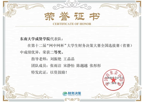 近日,经济管理学院学生参加多项由中国商业会计学会主办的学科竞赛,均斩获佳绩,共获得2024年江苏省企业价值创造实战竞赛二等奖一项,2024年江苏省大学生企业数字化管理创新大赛省级二等奖一项、省级三等奖两项,第十二届“网中网杯”大学生财务决策大赛(省赛)二等奖一项。