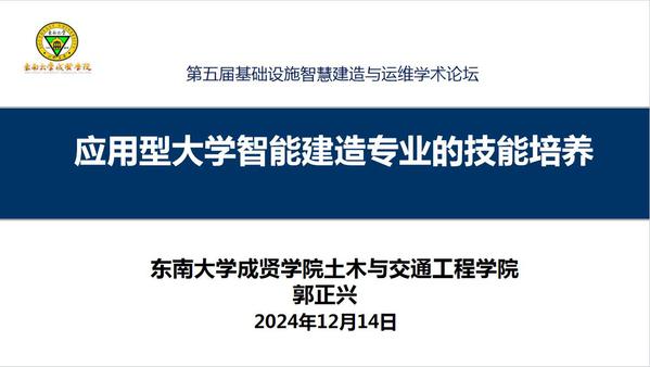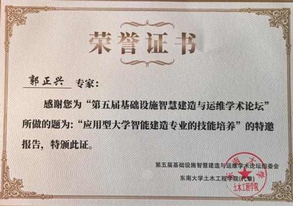本次论坛依托大数据、云计算、区块链和人工智能等新兴技术的使用和发展,聚焦加快5G网络、人工智能、大数据中心等新型基础设施建设进度,围绕进一步统筹好新型和传统基础设施的协同融合发展,构建现代化基础设施体系,重大基础设施智慧建造与运维最新研究进展等议题展开交流研论,共同探讨我国在相关领域的卡脖子问题及其解决思路。论坛上,郭正兴院长结合“智能建造本—研—职多层次融合人才培养”议题,作了题为《应用型大学智能建造专业的技能培养》专题报告。郭院长围绕建筑工业化、数字化、绿色化融合发展,应用型大学智能建造专业的知识结构和技能结构分析,beat365在线唯一官网登录智能建造专业模块化实操技能构建与实施,智能建造综合实训课程体系建设等内容,详细报告了beat365智能建造专业在专业、课程建设方面所做的尝试与探索,为国内同类高校构建创新人才培养模式,培养具有实操技能的高水平应用型本科人才提供实践经验。