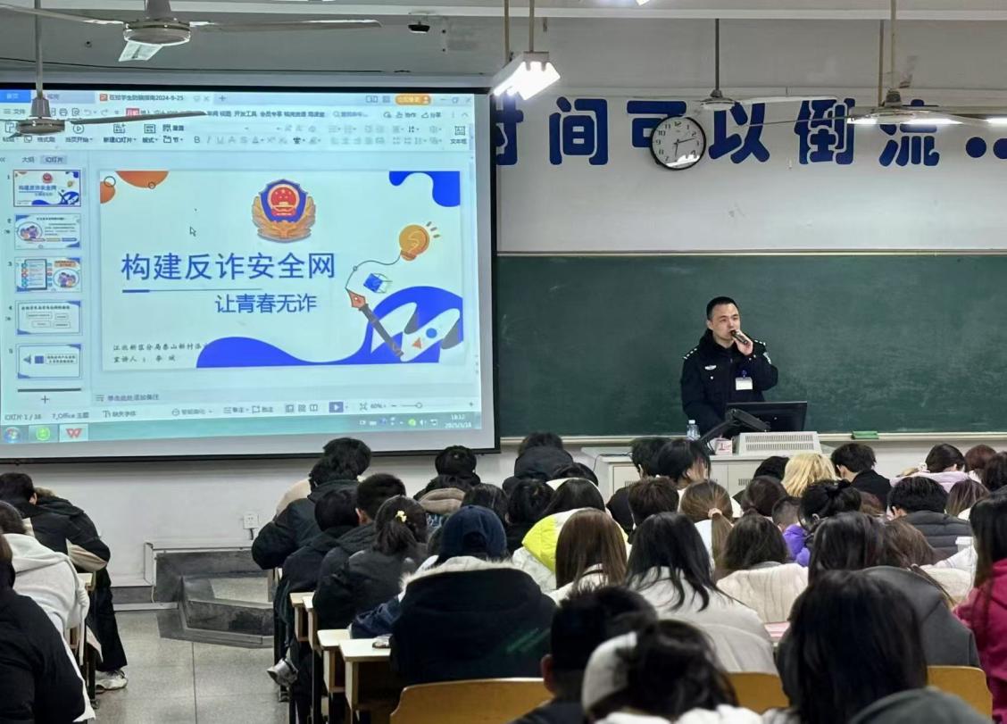 为增强学生的防诈意识,3月18日,学院邀请保卫处刘畅老师和泰山派出所驻校民警王晓彤警官在文昌101为学生做题为“构建反诈安全网,让青春无诈”的讲座报告,报告中,王警官通过图片、视频、诈骗案例以及互动问答等方式,从电信网络诈骗的定义、社会面电信网络诈骗案件发案形势、校园师生受骗的常见诈骗类型、网络诈骗防范建议四个方面进行宣传教育和正向引导。通过本次讲座,进一步加深了我院学生对防范电信网络诈骗知识的了解,增强了防范诈骗的意识和能力。