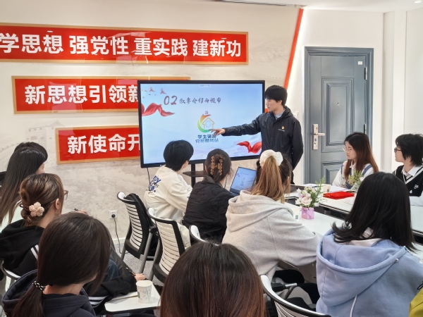 学生党员葛桢杰介绍服务站标识设计理念