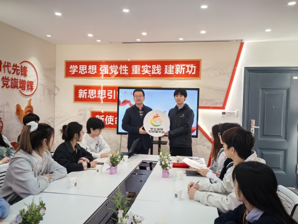 启动仪式上首先由陈涵同学介绍服务站成立的背景。当前,面对大学生思想活跃和价值取向多元等问题,在学生日常活动最重要、交流时长最长的宿舍建立党员服务站既能够及时了解学生思想动态,开展有针对性的思想引领,帮助学生树立正确的价值观,也能够让学生党员深入学生群体,服务同学,提升服务意识,树立党员的良好形象。随后葛桢杰同学对宿舍党员服务站标牌的设计进行了讲解,通过对标牌创新设计的讲解让每一位党员深刻感受到标牌背后蕴含的责任和担当。讲解结束后,第二党支部书记赵毅老师向学生党员进行了授牌,并选定桃9-426、桃16-415为首批挂牌宿舍开展服务站建设。授牌结束后陈涵同学对宿舍党员服务站具体工作职能进行介绍,通过结合其他学校的相关经验和我院学生需求实际,服务站明确了宣传政策、提高素养,热情服务、解决困难,收集意见、联群促通,及时处突、确保安全,组织活动、丰富生活这五项基本职能,努力为同学们提供覆盖思想引领、素质提升、学业指导、困难帮扶、管理服务和文化建设等全方位的服务。随后,土木与交通工程学院党总支书记杨阳老师为男生宿舍和女生宿舍的首任服务站站长颁发了聘书。