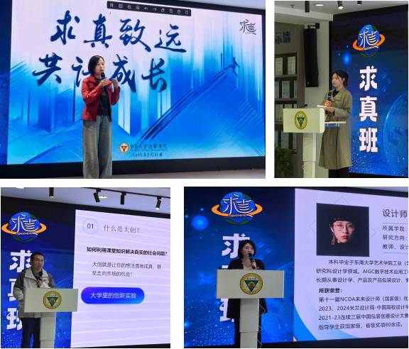 陈雪琼老师以“文创设计背后的求真精神”为引,通过展示由建筑与艺术设计学院青年教师陈晓青老师设计的班级专属文创产品,诠释“求真班”品牌的文化内核。她细致解读了求真班转专业政策与学业规划逻辑,提醒学生明确自己的兴趣和方向后再选择,以理性思辨与赤诚热爱确立学业生涯规划目标。