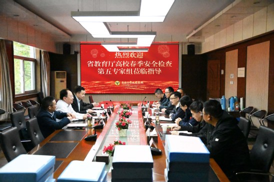 根据《省教育厅关于开展全省高校春季安全检查工作的通知》(苏教安函〔2025〕2号)文件精神,4月15日,省教育厅高校春季安全检查第五专家组来beat365进行了实地检查。专家组由江苏大学安保处处长袁海宇、江苏科技大学后勤管理处处长薛泉祥、泰州学院保卫处处长陈根怀、江苏大学安保处综合科科长许雷组成。学校党委副书记、副院长王荣,党政办公室、保卫处、教务处、学生处、后勤管理处、图档信息中心、制药与化学工程学院等单位负责同志参加了本次检查。