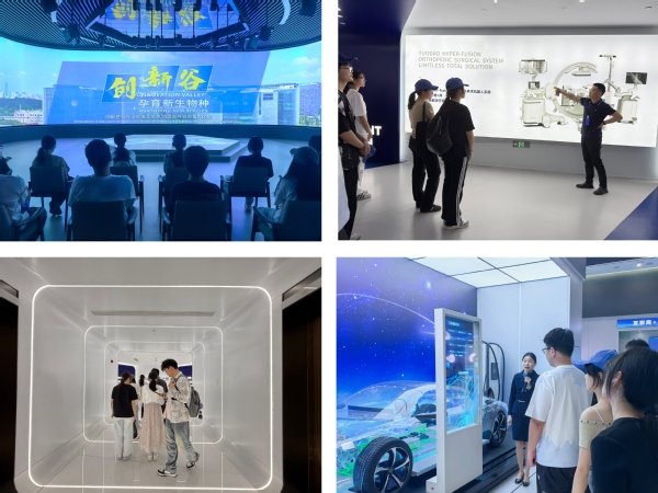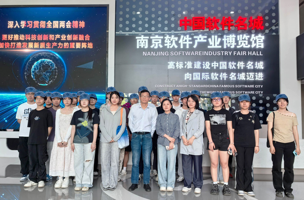 随后,师生参观南京软件产业博览馆。软件谷党政办讲解员通过数字沙盘、交互式展台及行业案例展示,系统呈现软件谷作为国家级双创示范基地的产业布局与发展成就。从基础软件到人工智能,从云计算到元宇宙生态,学生们深刻感受到“软件定义未来”这一行业趋势的震撼力量,并对南京建设“创新名城”的战略实践有了全景认知。