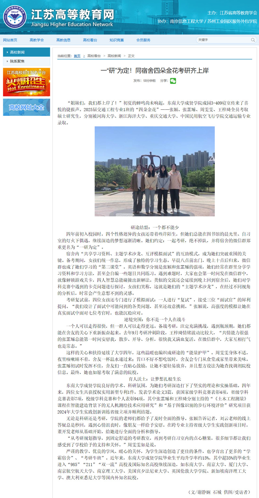 【江苏高等教育网】一“研”为定!同宿舍四朵金花考研齐上岸