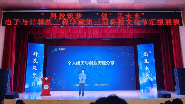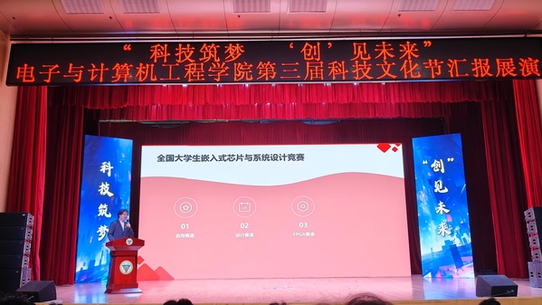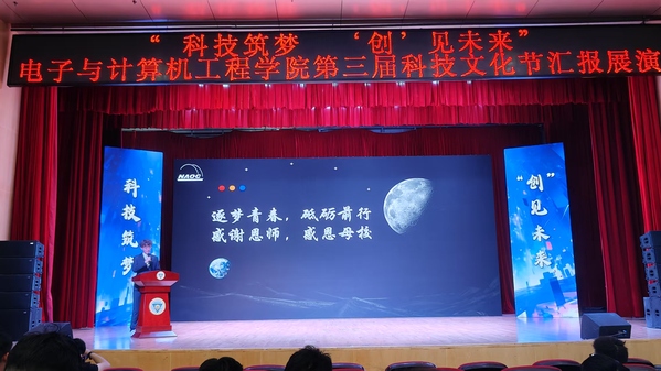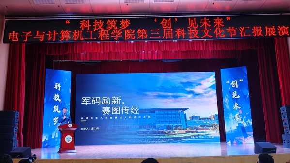 代码与灵感碰撞,创意与技术齐飞。5月27日下午,电子与计算机工程学院第三届“科技筑梦,‘创’见未来”科技文化节汇报展演在综合楼报告厅举行。学校副院长戴玉蓉,教务处副处长黄诚,学生处副处长沈黎芳,校工会副主席、校友会副秘书长颜秉明,电子与计算机工程学院执行院长王晓蔚、党总支副书记羊栋、副院长朱林、综合办主任冯杭州,南京微淳信息科技有限公司总经理、2005级校友刘跃波及师生代表500多人参加了活动。从智能硬件展示到编程竞技现场,从AI创意秀到机器人舞蹈表演,师生们用脑洞大开的作品和精湛的专业技能,带来了一场沉浸式的科技文化体验。