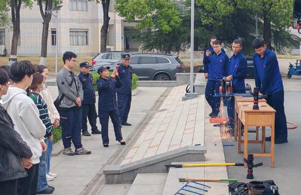 4月24日,消防全景体验活动开展,活动现场设置了救援破拆装备、穿戴防护装备、扑救扑灭装备等体验区。南京消防高新大队消防员进行消防常识的宣教后,现场师生在引导下至不同体验区进行了实际操作。通过实景模拟与亲手操作的体验,增强了师生的代入感,更好地掌握了相关设备的使用方法,提高了处置初期火灾和应急救援的能力。