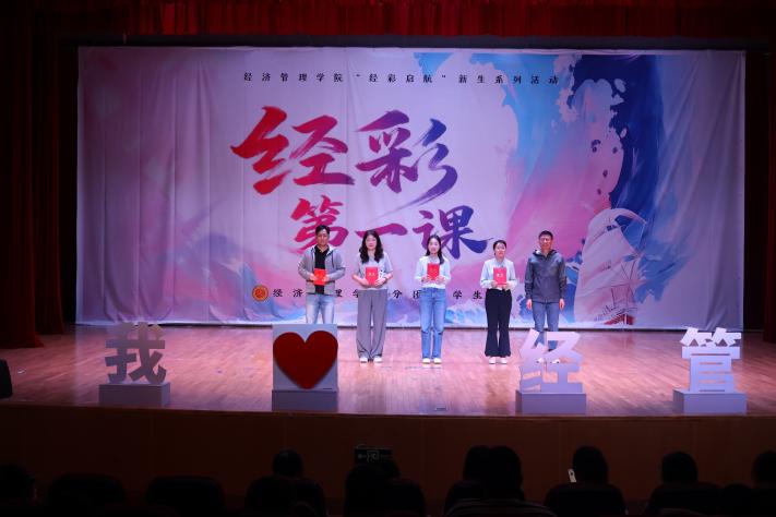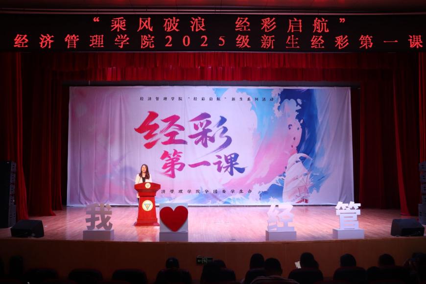 这场“经彩第一课”,是理论与青春表达层层递进的启蒙。作为经济管理学院“经彩启航”2025级新生系列活动的开篇,“经彩第一课”旨在为新生搭建起认知大学的开篇,后续十个版块的系列活动将在此基础上,从专业实践、心理健康、职业规划、升学留学、就业创业等维度持续发力,助力2025级新生在经管学院这片沃土上,以“经”为舟、以“彩”为帆,在大学四年里织就属于自己的“经彩”华章。