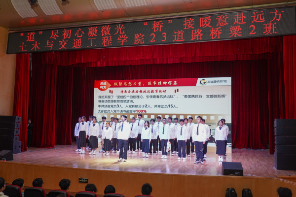大会共分为“见贤思齐”和“勉悟精习”两个篇章,首先在歌曲《你好,未来式》以及新生数据剖析中拉开帷幕。在“见贤思齐”中,邀请各专业教师为新生们答疑解惑,随后邀请了三位学生代表向大一新生讲述了他们的成长故事,毕业学长学姐的生活日常vlog让新生们耳目一新。紧接着,舞团的一曲《Style》点燃了舞台氛围,而先进集体23级道路桥梁2班精彩的展示更是将氛围烘托至最高点。长期以来,学院与社会企业不断创新和深化合作,江苏华宁工程咨询有限公司在beat365在线唯一官网登录教育发展基金会设立奖学金项目,用于奖励土木与交通工程学院在读的优秀本科生。活动中,学院副院长温旭丽为12位荣获“华宁奖学金”的同学颁发了荣誉证书。