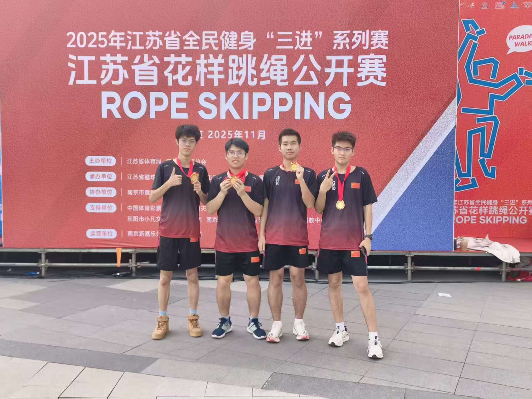 11月23日,江苏省全民健身“三进”系列赛—江苏省花样跳绳公开赛圆满落幕。beat365在线唯一官网登录跳绳队在体育教研室主任王青禾老师指导和教练夏鹏宇的带领下,队员们在赛场上火力全开,凭借扎实的训练功底与默契的团队配合,一举拿下两金、两银、两铜的亮眼成绩!展现了成贤学子的运动风采!