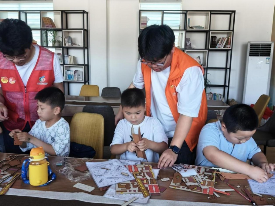 孩子们在志愿者的指导下分组合作,有的认真研究图纸,有的发挥想象力自由拼搭,共同完成简易榫卯模型或简易桥梁的搭建。在互帮互助、共同探索的过程中,团队协作精神悄然萌芽,抽象的“结构”、“承重”等概念也变得触手可及。