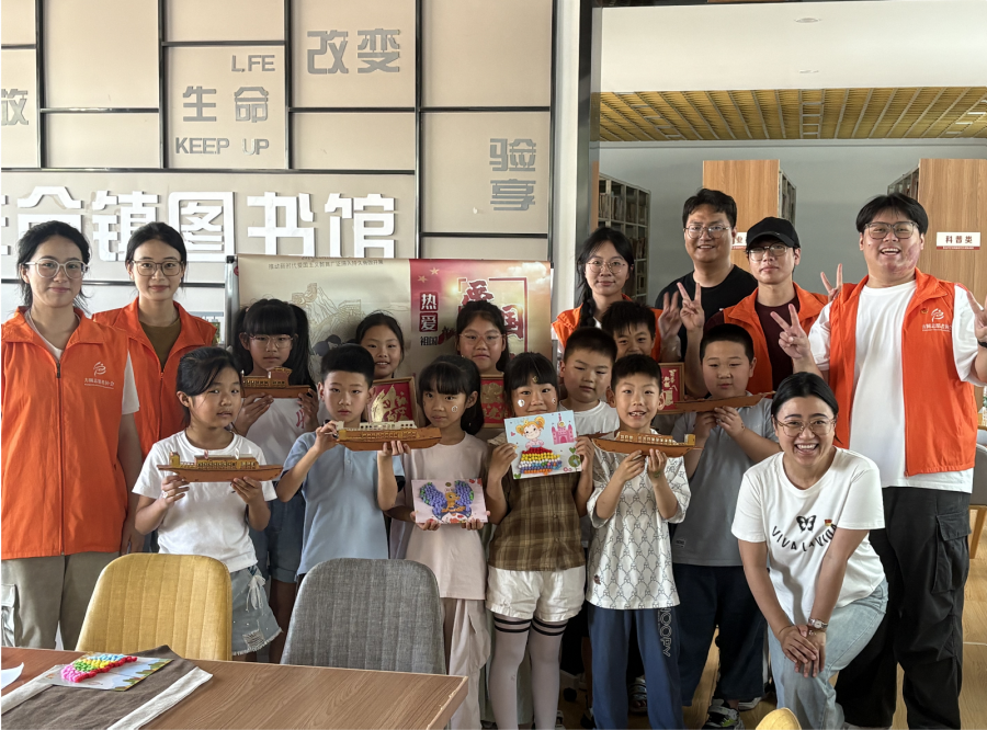 “这是南湖红船,是中国共产党一大召开的地方。”7月2日,志愿者在文化活动中心,组织开展了一节红色手工课。志愿者拿起剪好的红色卡纸,向孩子们讲述背后的红色故事。三仓镇作为革命老区,曾见证过无数革命先辈的奋斗历程拥有丰富红色资源,团队特意准备了“南湖红船”木制摆件模型、七一建党节金箔画、建党百年征程剪纸等手工材料。在志愿者指导下,孩子们小心翼翼地粘贴、剪裁、拼装。制作七一建党节金箔画时,孩子们用金箔小心翼翼地装饰画面,在光影流转中感受党的光辉历程;剪裁建党百年征程剪纸时,志愿者边示范边讲解剪纸中蕴含的历史事件,让红色记忆在指尖流转。当孩子们小心翼翼地举着完成的红色手工作品合影时,一抹抹稚嫩的身影里,红色的力量正悄然传递。