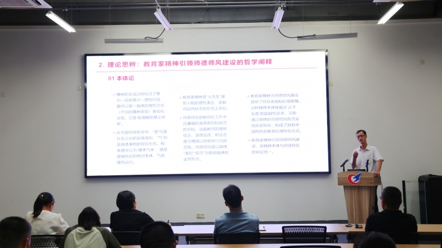 为统筹部署新学期各项工作,扎实推进师德师风建设,9月10日下午,kaiyun开云官方网站在现代建筑技术馆313召开了师德师风建设大会,邀请马克思主义学院教师曹圣军作《教育家精神引领下的师德师风建设》专题讲座,全体教职员工参加会议。会议由学院党总支书记徐永红主持。