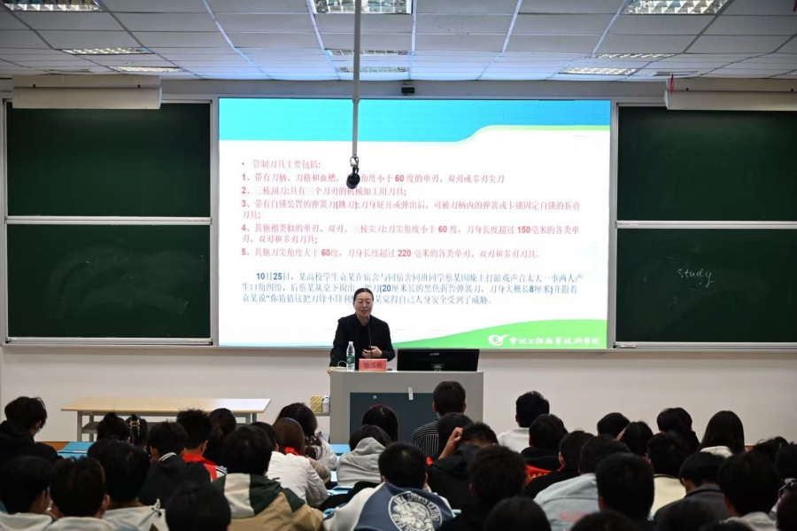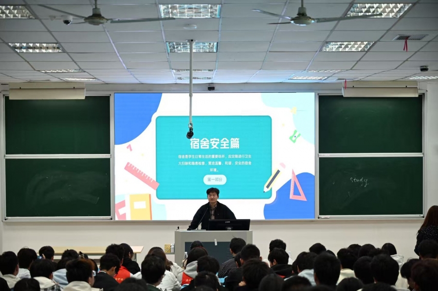 随后进行的宿舍长安全教育大会,辅导员朱朋通报了近期宿舍管理情况,结合数据分析了卫生、考勤、安全等方面的亮点与不足,重申了违纪行为处理办法,强调宿舍长须切实履行“第一责任人”职责。会上,学院还邀请了校保卫处处长侯雪燕作安全专题讲座,聚焦人身、财产、治安安全三大方面。她结合高校真实案例,剖析了宿舍火灾与用电事故成因,讲解了违禁电器识别与火灾逃生技巧;针对刷单、游戏交易等高发电信网络诈骗进行了防范提示;强调了管制刀具的法律责任,并介绍了宿舍矛盾纠纷的正确处理方式。她要求全体宿舍长要紧绷安全弦,定期排查隐患,杜绝违规行为。